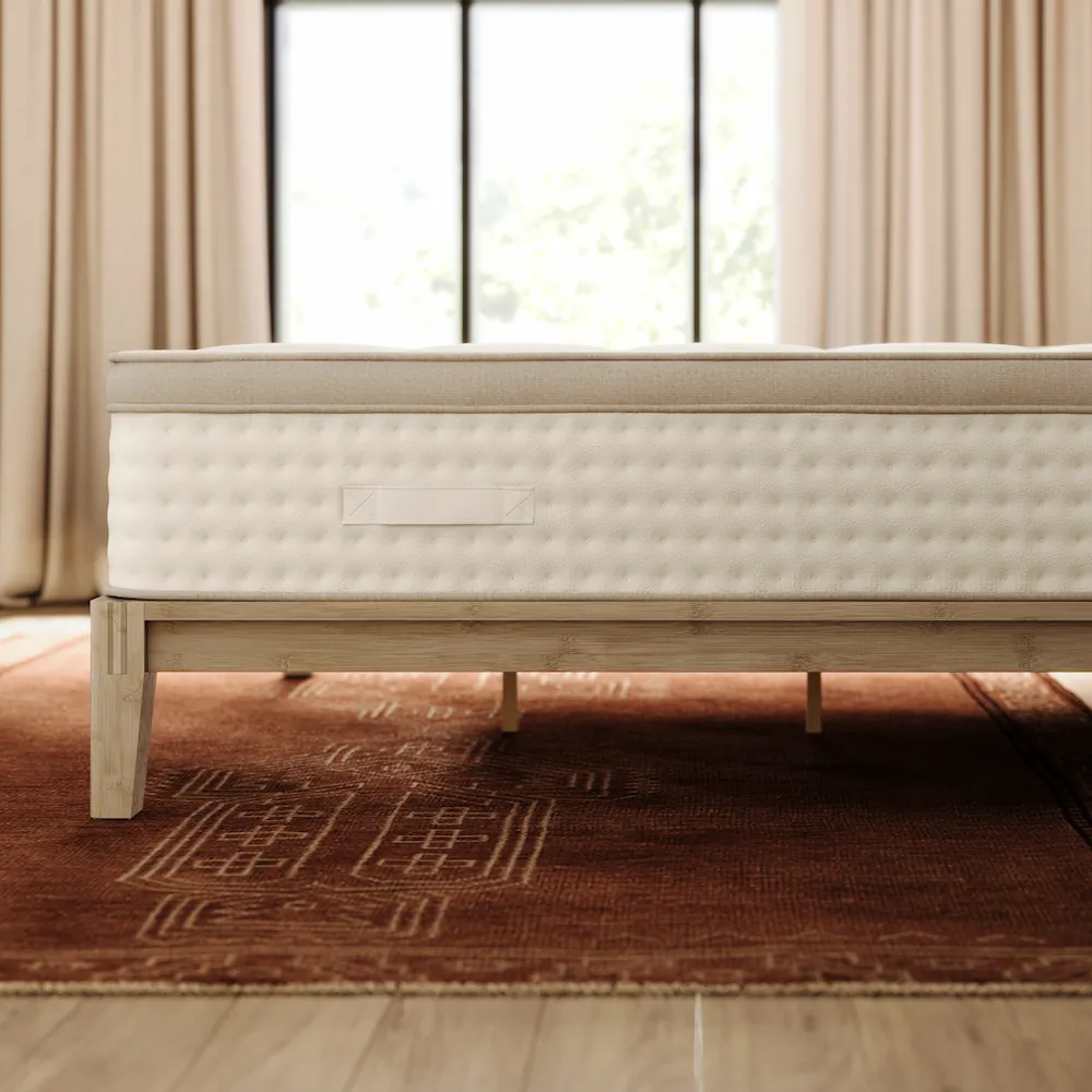 Our expertly crafted Bamboo Bed Frame with a soft linen headboard